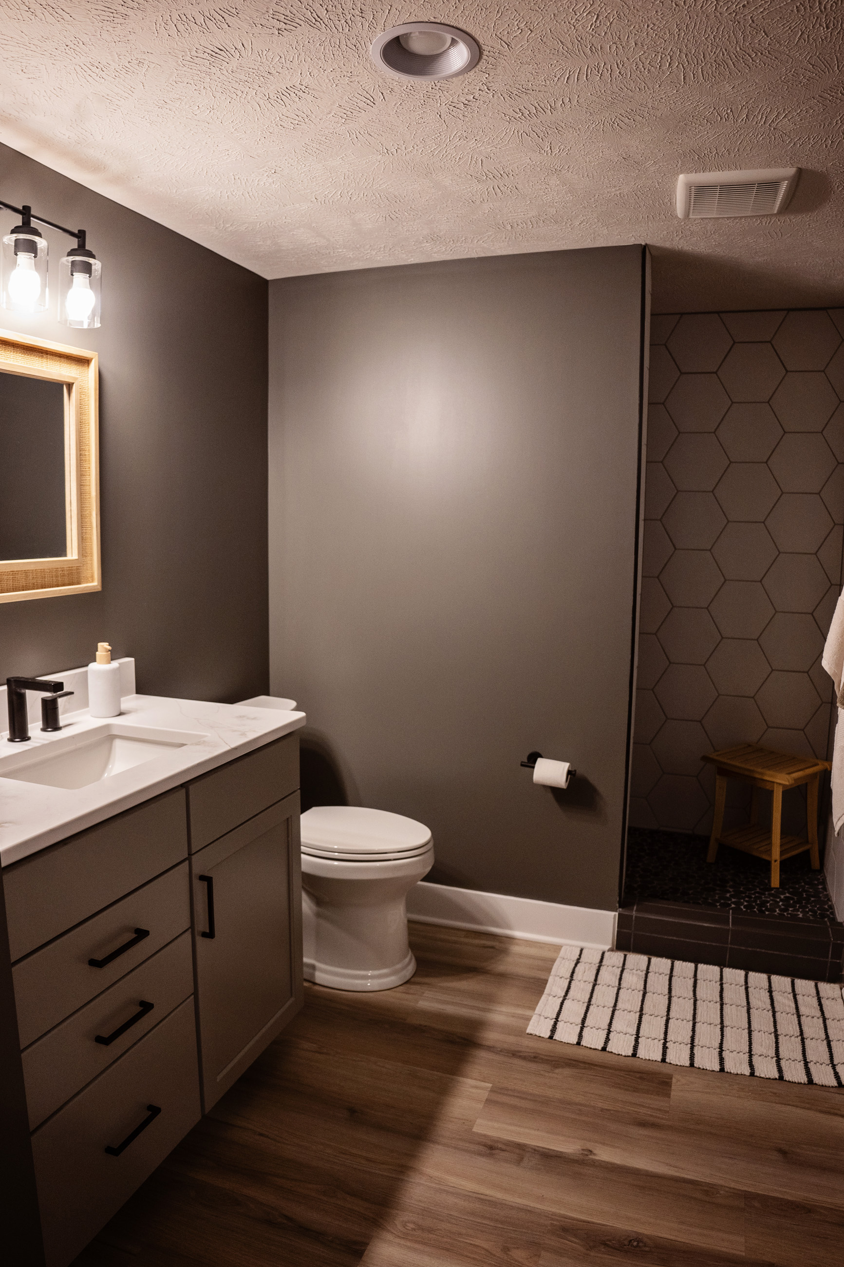 “We couldn’t be happier with our newly finished basement! The transformation is incredible, turning an underutilized space into a cozy and functional area that our entire family enjoys. From the initial consultation to the final touches, Kobe was incredibly professional, attentive, and truly understood our vision. He managed to maximize the space while incorporating all the features we wanted, including a basement bar, game area and plenty of living room space. With his craftsmanship and ideas, the basement is not only practical but also stylish and inviting.